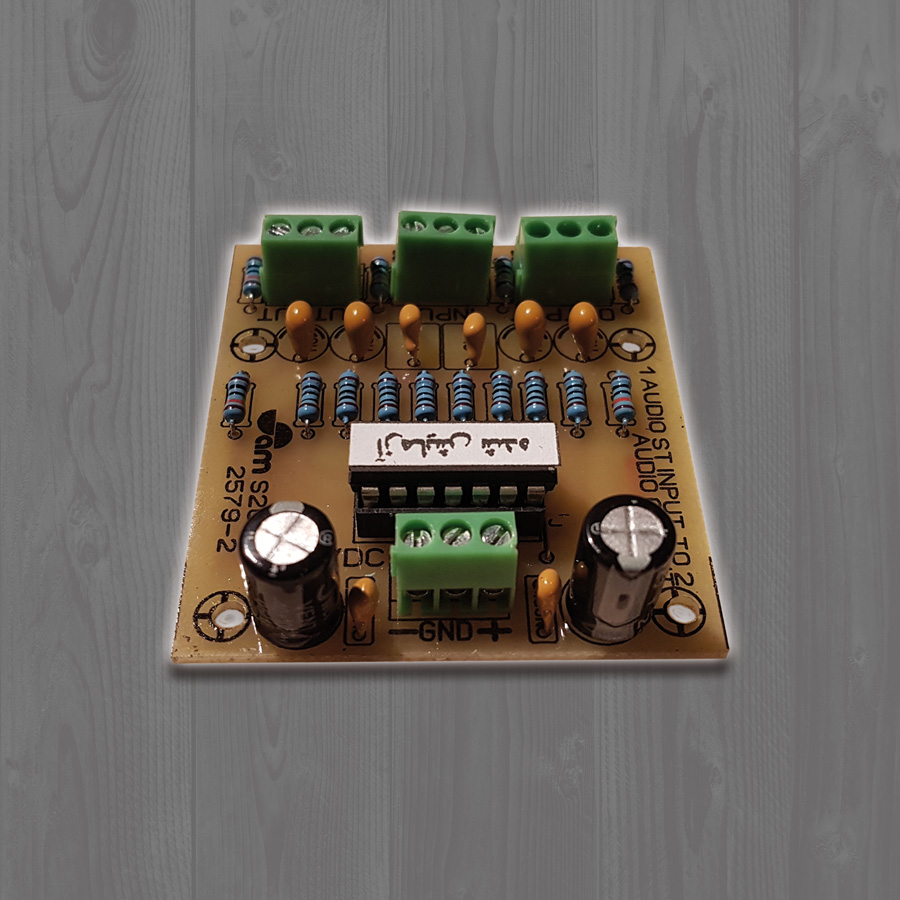 این برد زمانی به کار می آید که نیاز دارید از یک ورودی استریو 2 خروجی استریو بگیرید برای نصب به ورودی 2 آمپلی فایر استریو یا 4 آمپلی فایر مونو