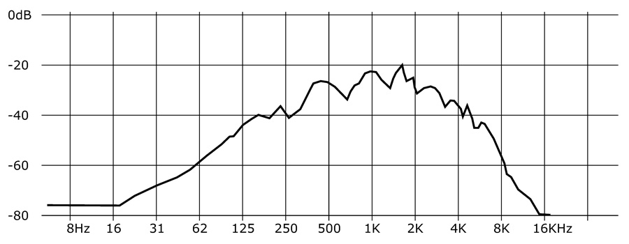 فرکانسهایی که بیشترین تقویت توسط این فیلتر انجام میشود، بین ۵۰۰ هرتز تا ۴ کیلوهرتز هستند. این نمودارها با پخش نویز سفید، سپس ضبط صدای خروجی از فیلتر و عبور صدا از یک تحلیلگر طیف به دست آمدهاند. بنابراین، این نمودار نسبتاً قابل اعتماد است، زیرا از یک میکروفون خوب برای ضبط صدا استفاده شده است.