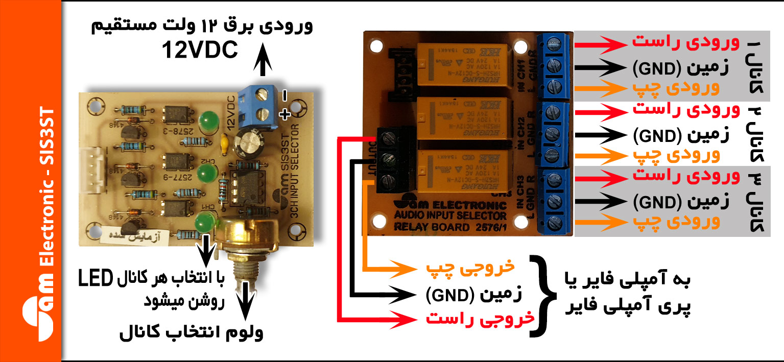 این برد از میان 3 پخش کننده صوتی برای نمونه MP3 پلیر، CD پلیر، گرامافون و... به وسیله ولوم روی برد کنترل، یک مورد را انتخاب کرده و به ورودی پری آمپلی فایر و یا مستقیم به ورودی آمپلی فایر میفرستد.