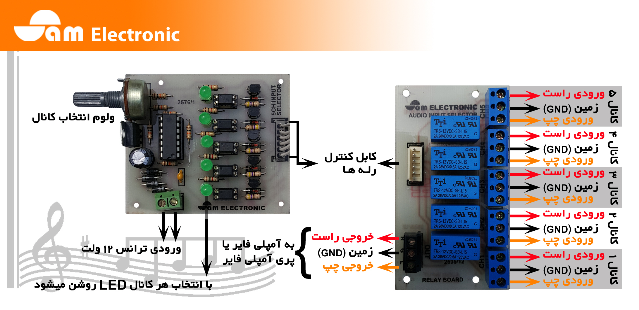 این برد از میان 5 پخش کننده صوتی برای نمونه ام پی تری پلیر، سی دی پلیر، گرامافون و... به وسیله ولوم روی برد کنترل، یک مورد را انتخاب کرده و به ورودی پری آمپلی فایر و یا مستقیم به ورودی آمپلی فایر میفرستد.